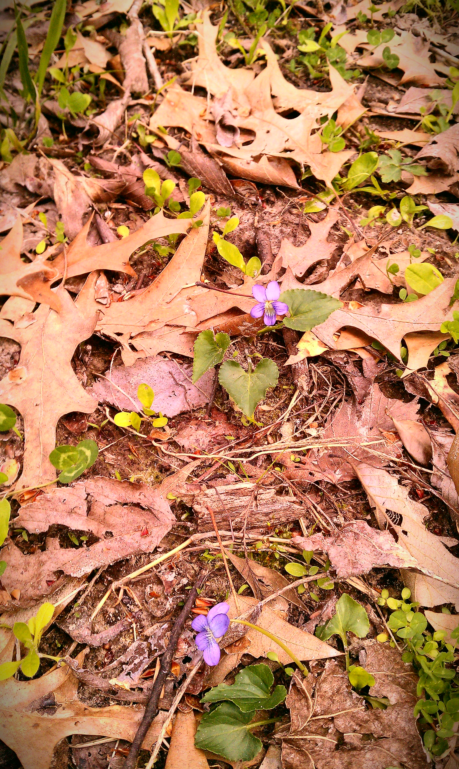 On the walk, I constantly noticed the violets.  Some were blooming and some were just sprouting out of the leaf litter on the forest floor.  I always think of my mother when I see them.  She would love to ride up to the park to see if the one particular section was full of blooms.